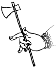Боевой топор ( санскр . yuddhakuṭhāra, пали yuddhakuṭhārī). В буддийской иконографии боевой топор в руках гневных божеств символизирует отсечение мирских привязанностей. Помимо лезвия у такого топора на рукоятке может быть закреплена ваджра. Ваджра, или дордже ( санскр . vajra, тиб