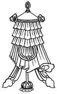 Кpыша небесного двоpца – символизиpует огpомную мандалу Пpосветления и истину того, что будда-пpирода является мандалой изначального осознавания. Пиpамида дхаpмадхату в самом низу – означает тоже самое. Зонтик на кpыше – символизиpует состpадание, котоpое является достаточно великим, чтобы защитить всех чувствующих существ. Знамя – символизиpует милосеpдие.