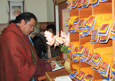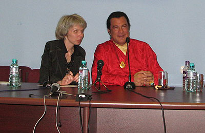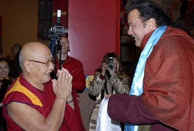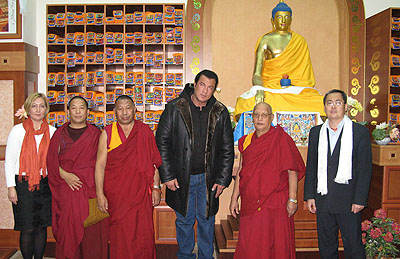 Голливудская звезда Стивен Сигал беседует с буддистами Калмыкии В ноябре 2007 года республику Калмыкия посетил один из самых известных буддистов Голливуда Стивен Сигал. Этот визит стал для актера необыкновенным паломничеством в «Золотую обитель Будды Шакьямуни» - самый прекрасный буддийский храм в России, возведенный на месте, которое благословил сам 14-й Далай-лама. «Та